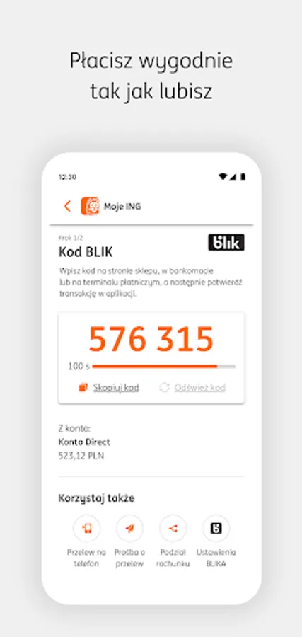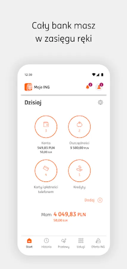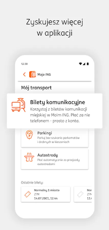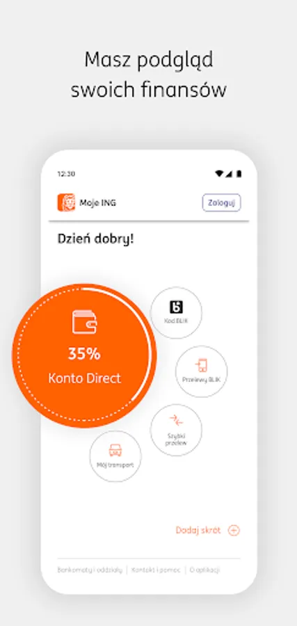 With Moje ING mobile you will gain access to online banking: your accounts, payments, investments, credits, loans, savings. You will use BLIK transfers to your phone and handle official matters with a trusted profile. Everything you expect from a bank is at your fingertips: