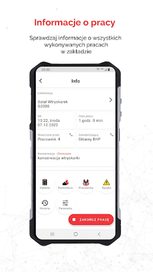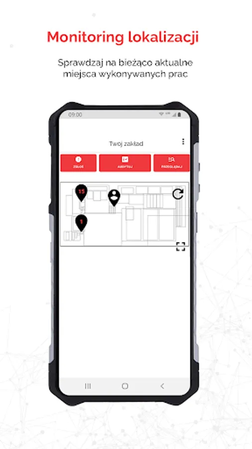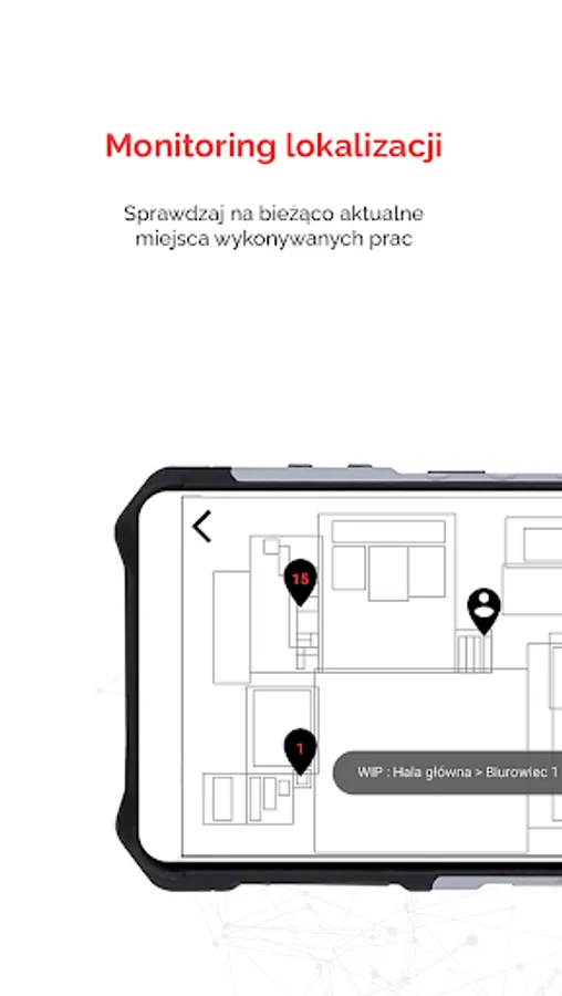1) Geolocation of employees, machines and devices makes the facility like a living organism, which allows us to monitor all processes taking place in it on an ongoing basis. Application, among others allows you to view the current location of a given employee/equipment, which allows you to quickly find a specific person or device. It gives information about the current risks to which the employee is exposed in a given location.