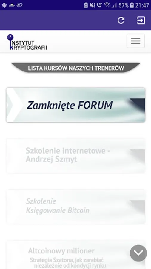 The application is also used to reproduce courses purchased at the Institute of Cryptography. We also count on your activity on the platform.