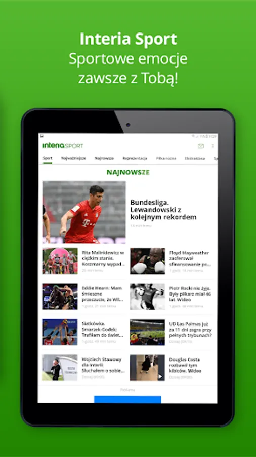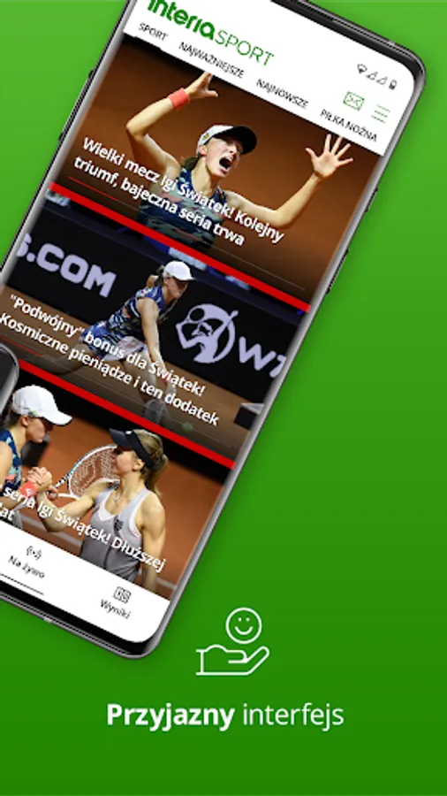 Download the Interia Sport application and unleash the emotions that the world of sport gives. Follow live scores and LIVE coverage. Stay on top of the successes and failures of your favorite athletes.
