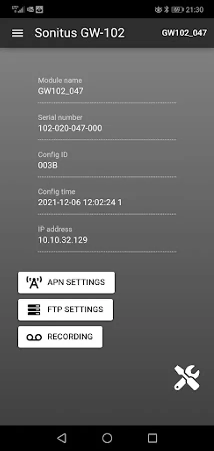Configuration of the GW-102 telemetry module via Bluetooth LE