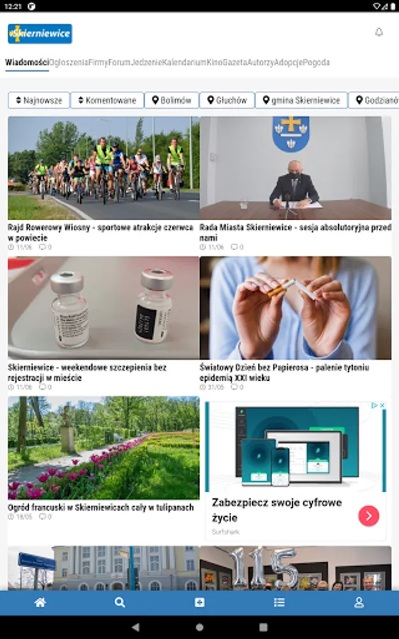 In the application, we present the most important news from Skierniewice - we write about municipal infrastructural and social investments, renovation of roads and public buildings, obtained subsidies, and we cover cultural and sports events. You will also find out with us where the road accidents happened and if there are any difficulties. We write about culture, education and social care.