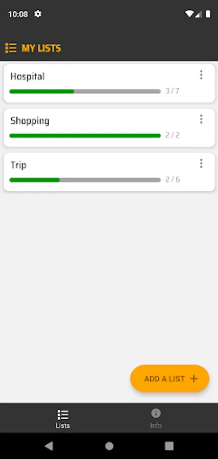 • Progress bar - shows the current status of the list.