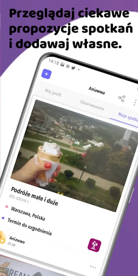 Heyway is an application ideal for people who want to meet new people, spend time together, find company while traveling, at a concert or shopping. Here you will meet those who have similar passions, interests and needs. This is an application for active, go-getting people who do not like to stay at home, and instead prefer to spend time actively and make new friends - and if it sparks, it's great! If you want to make an appointment with someone without any sham and embarrassment, without dating undertones, then this application is for you.