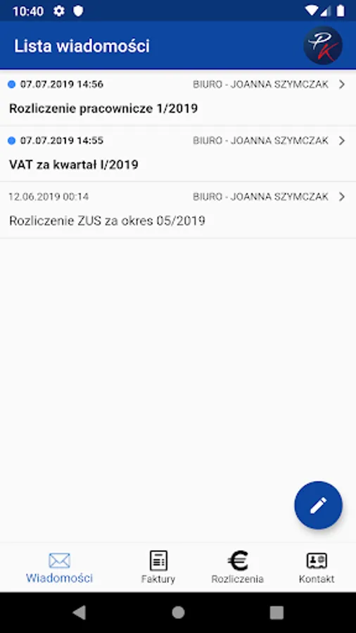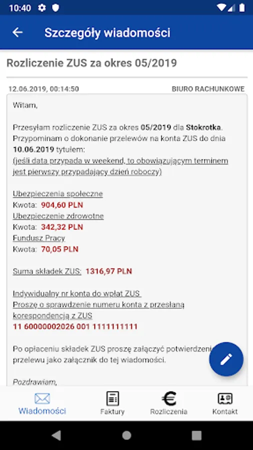 1. Checking the message from the accounting office and adding new ones