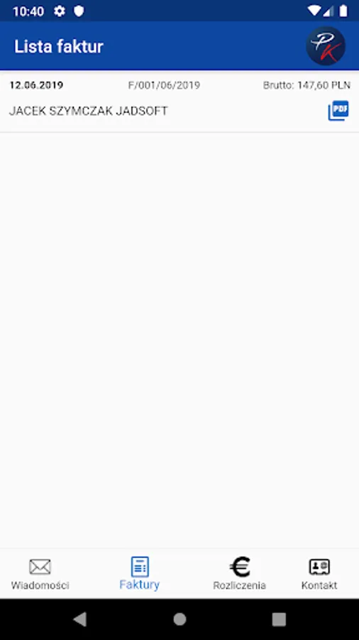 2. Preview of issued invoices and download of a given invoice in PDF format