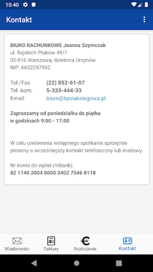 4. Quick access to contact details of the accounting office