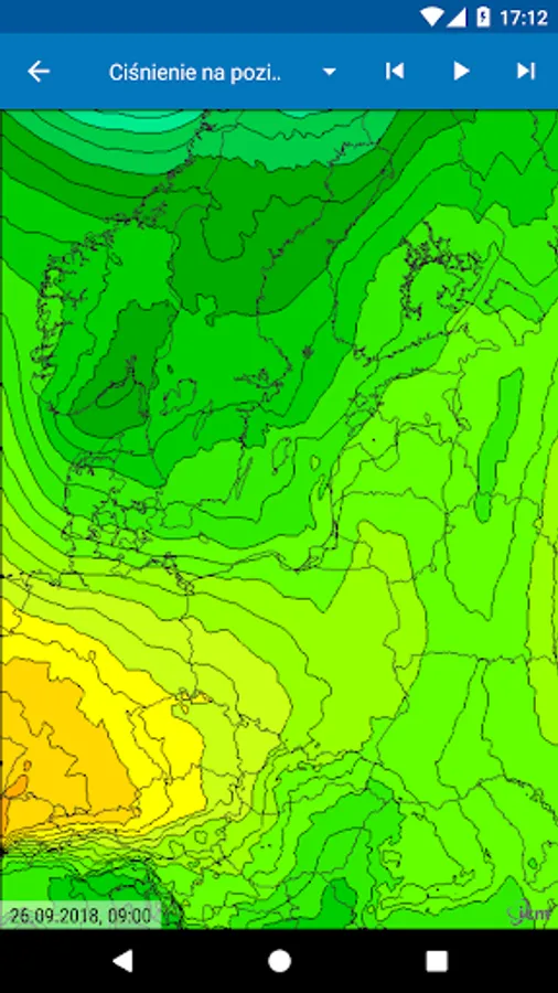 • browsing almost 20 types of weather maps at various magnifications for Europe (UM model),