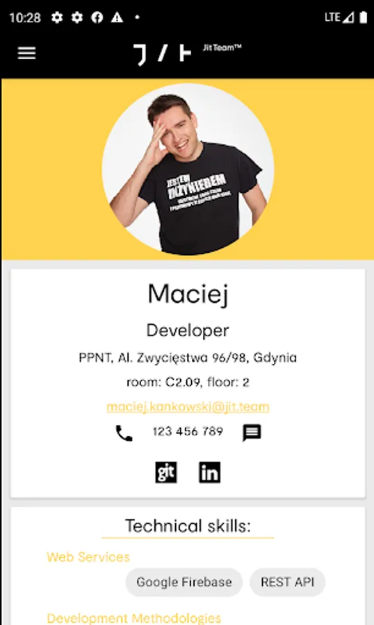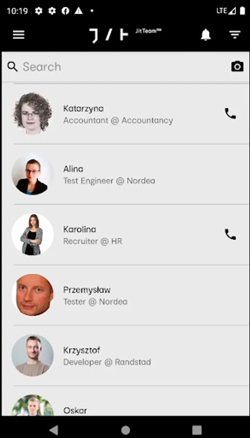 WeJit is a multi-platform communication app for different companies' access. It allows to search through employees' and candidates' database and edit their own profile. It also allows us to recognize incoming phone numbers. With the HR role, the user is able to add new candidates. All stakeholders are able to sign-in into our system from a mobile devices or using a web browser.