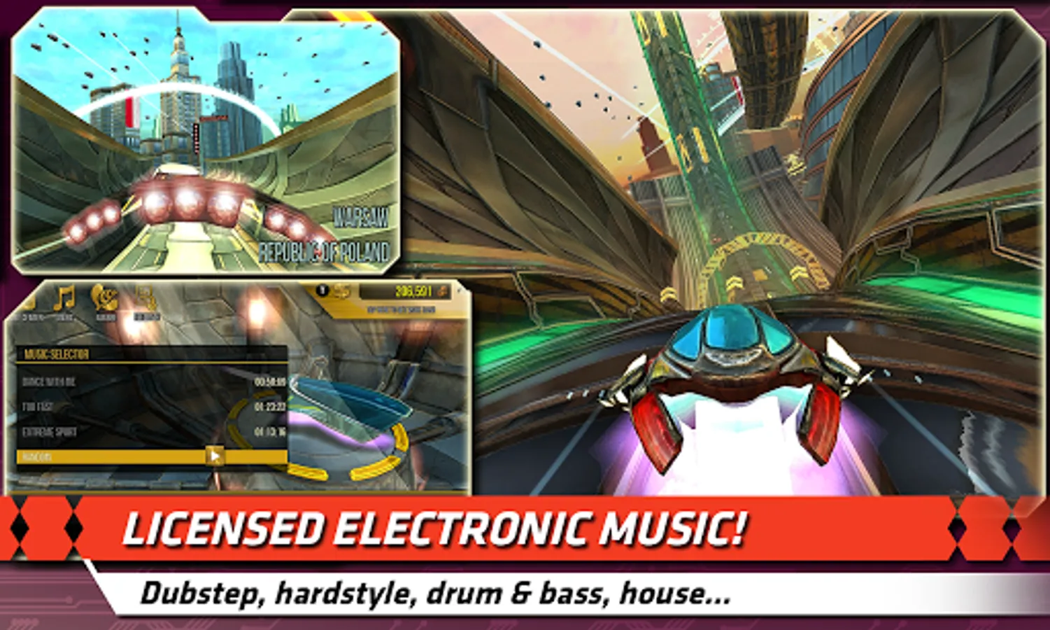 - 10 highly-detailed futuristic circuits (Los Angeles, London, Paris, Warsaw, Moscow, Frankfurt and more)!