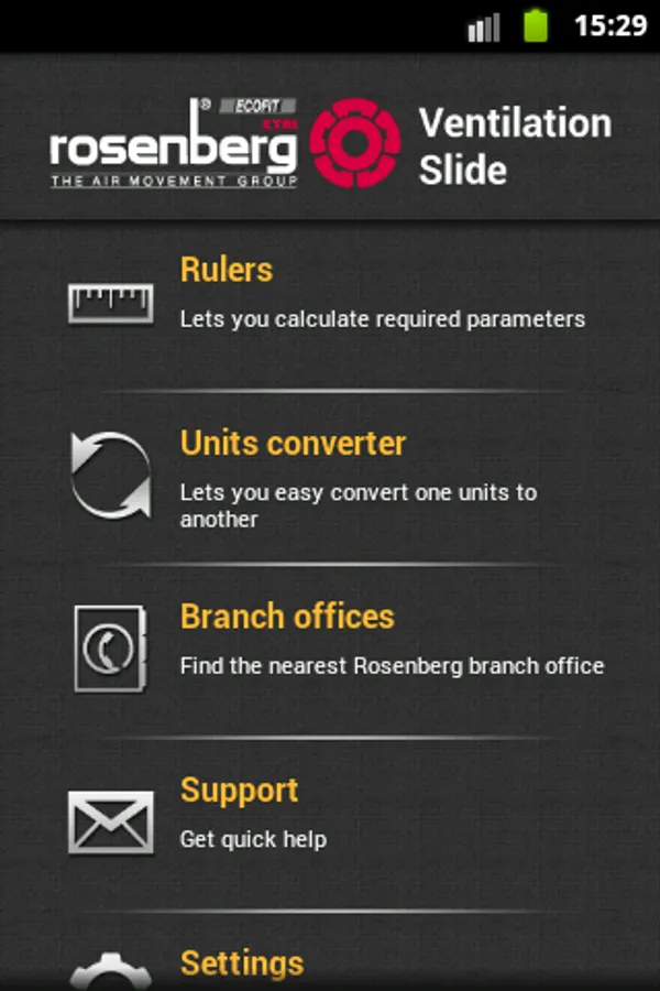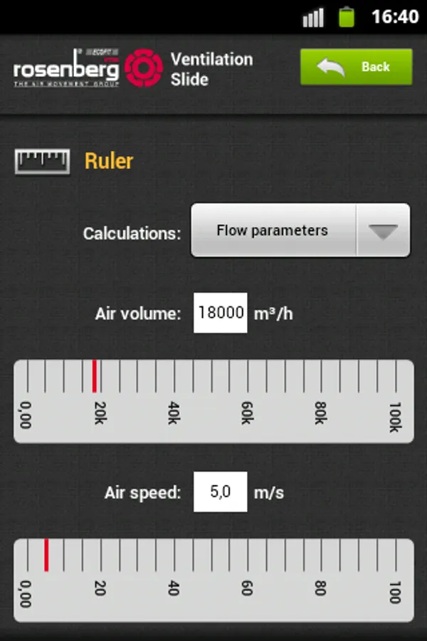 Ro-eSlide allows you to perform basic calculations of air flow parameters and selection of ventilation ducts.