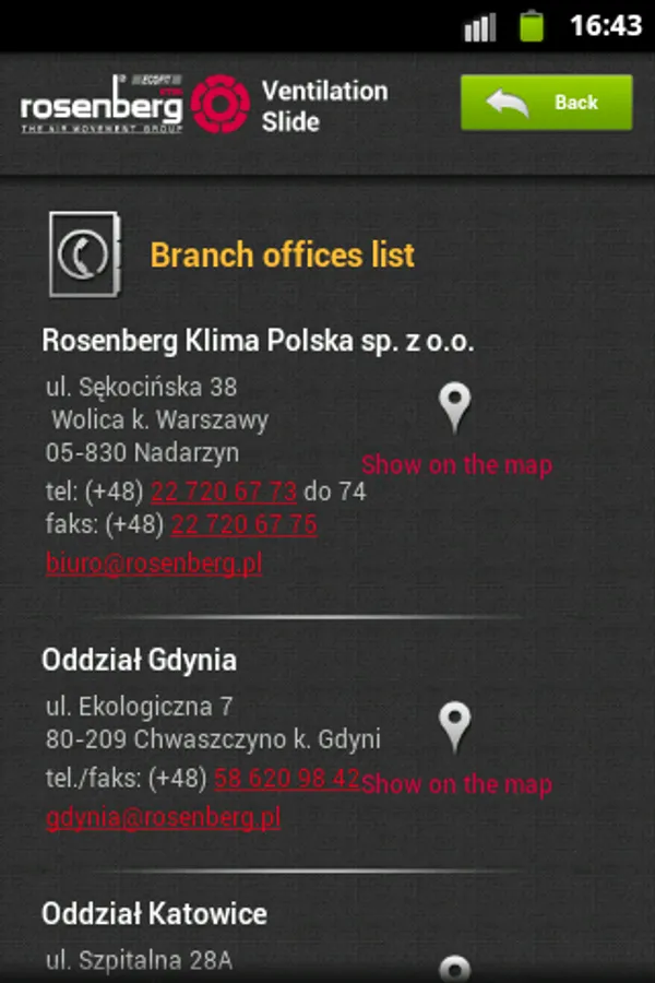 3. Branch offices - Rosenberg Klima Polska sp. z o.o. contact list.