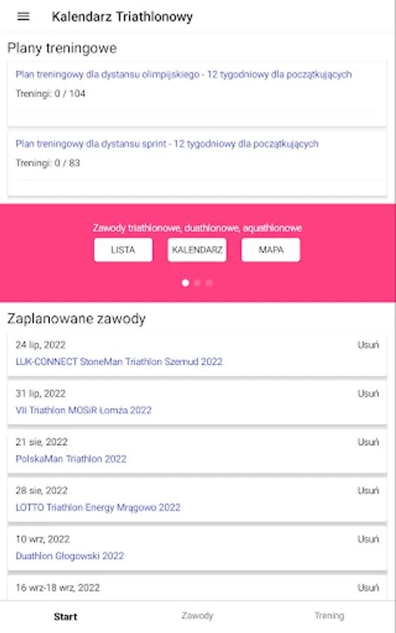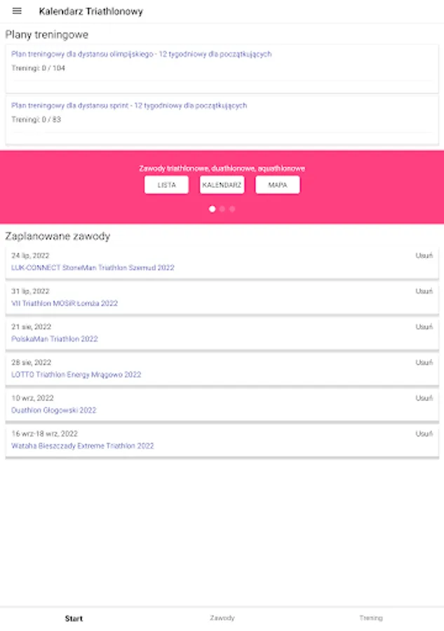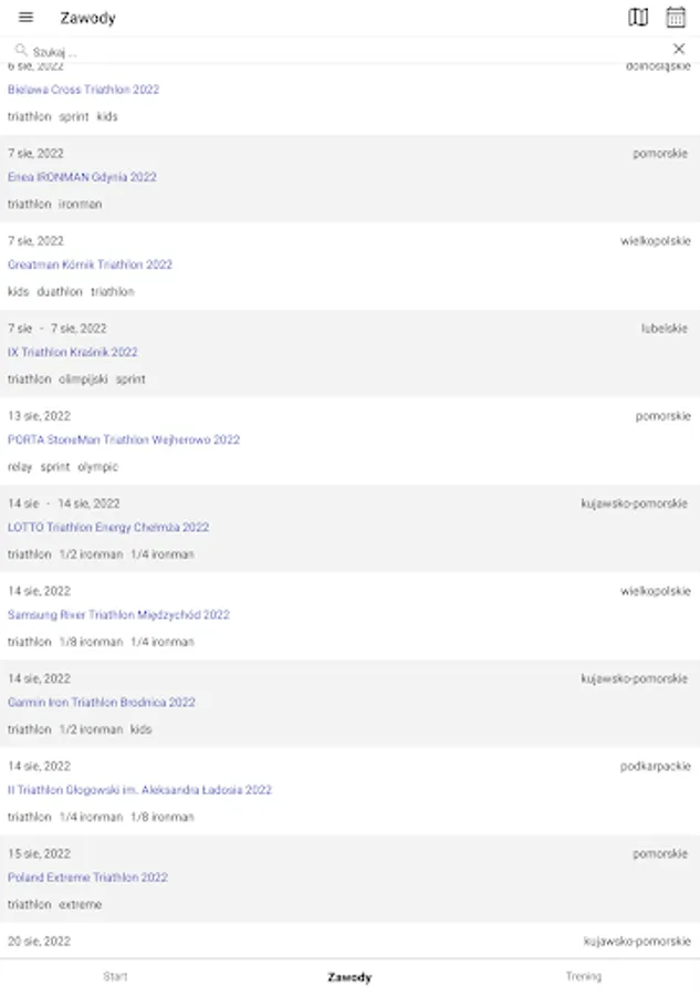 Here you will find everything you need to prepare and start in triathlon competitions. The Triathlon Calendar application is a database of triathlon, duathlon and swimrun competitions, training plans for each level of training, tips and training tips.