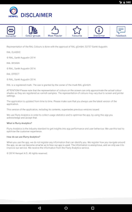 – Feedback - users can e-mail feedback to Hempel Marketing Europe.