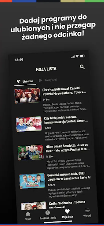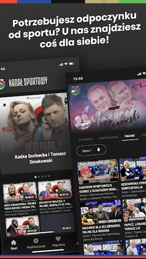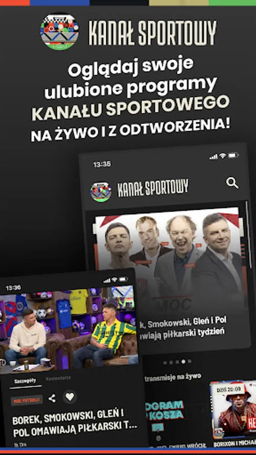 Watch programs created by the largest sports journalists in Poland, including: Mateusz Borek, Michał Pol, Tomasz Smokowski and Krzysztof Stanowski - all this and much more can be found in our application!