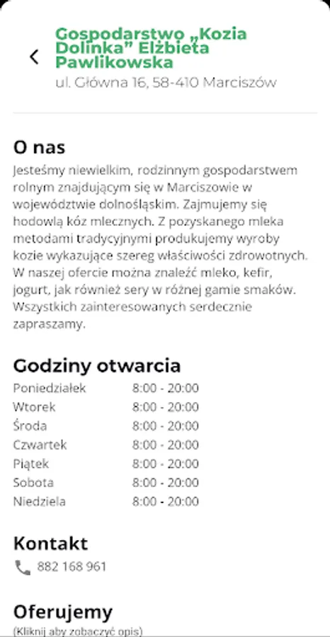 You will learn how to get to the farm, what it offers and even send an e-mail straight from the application.