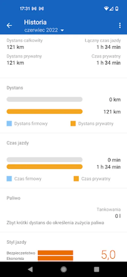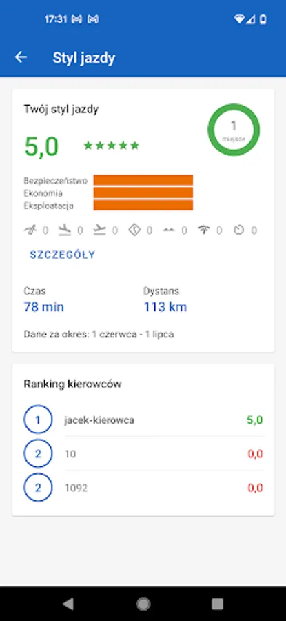 In the application you will find an assessment of the driving style with its components, driver rankings, gamification (competitions, rankings, indications of driving style elements that require improvement)