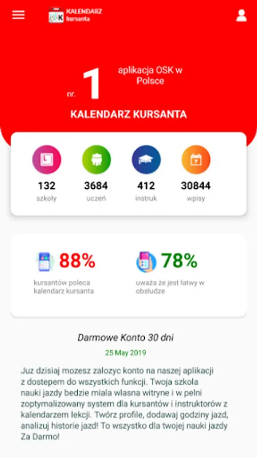 BETA version - Activation of a Student Profile. Only for students and only for OSK who have a profile of their school in the Student Calendar system. Fully automated system. Create calendars and profiles. Count the hours, view driving stories, book lessons, free notifications!