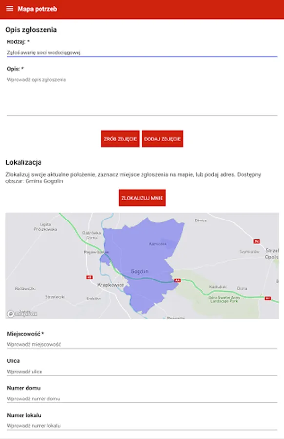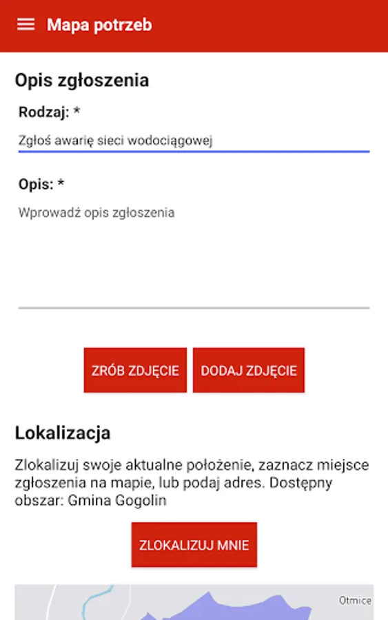 It may be, for example, a failure of the water supply system, a fault in the property, a problem with waste disposal or an illegal landfill. Select a report category, take a photo, press the locate button and submit your report.