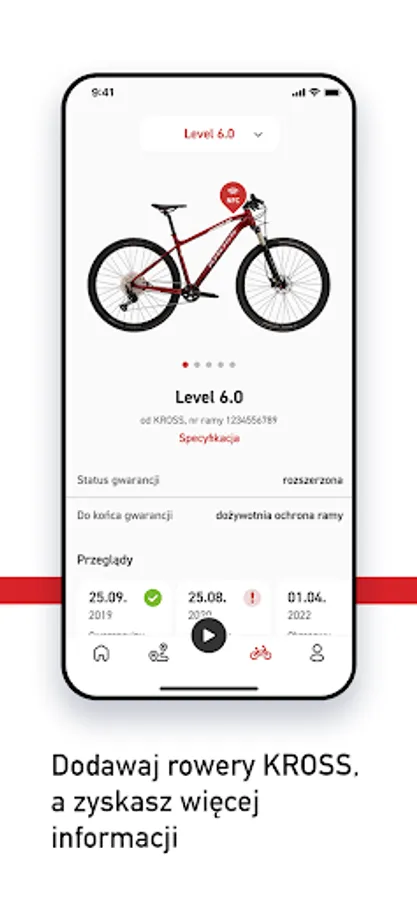 The route recording module is for everyone, but we have a surprise for KROSS bike owners. Add the bike to the application and you will gain quick access to its specifications, information on inspection dates and a whole list of necessary activities to make your bike feel taken care of.
