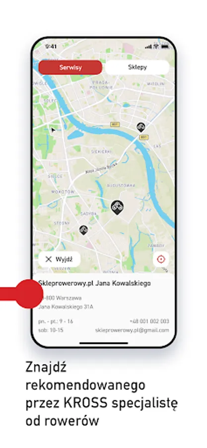 Are you on tour and just realized you don't have a spare inner tube? One click is enough and we will show you where to find the nearest professional help (signed with the KROSS brand).