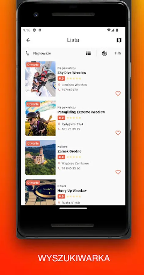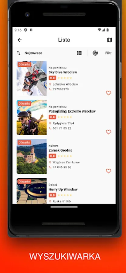 This is your personal tool that will make searching for interesting places a pure pleasure. In one place you will have access to the most important information, i.e. telephone number, website, short description, price of the service and much more...