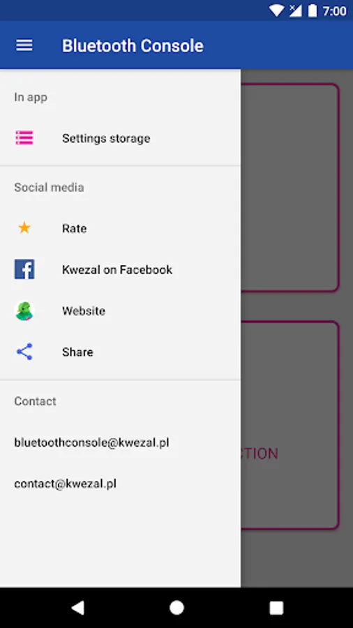 Bluetooth Console allows sending and receiving any kind of data between two electronic devices. The second device can be either an other smartphone or a tablet with this terminal installed, as well as a computer, and even a micro controller with a Bluetooth module.