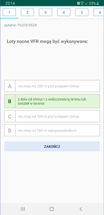 In addition, the application allows you to perform an exemplary exam. The exam consists of 25 questions (in the case of the "Communications" module it is 12 questions). The duration of the exam is 30 minutes. Note: the exam available in the application is an example of a knowledge test and may differ from the exams carried out at the Civil Aviation Authority and aeroclubs.