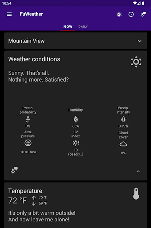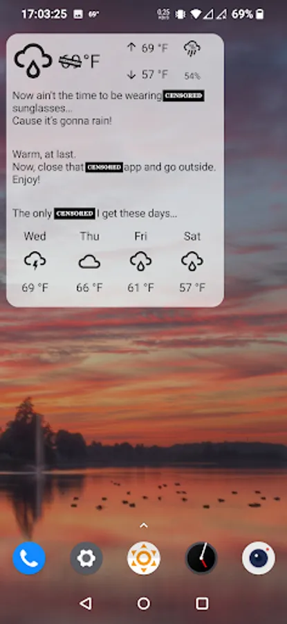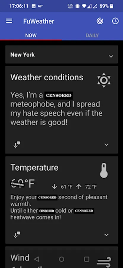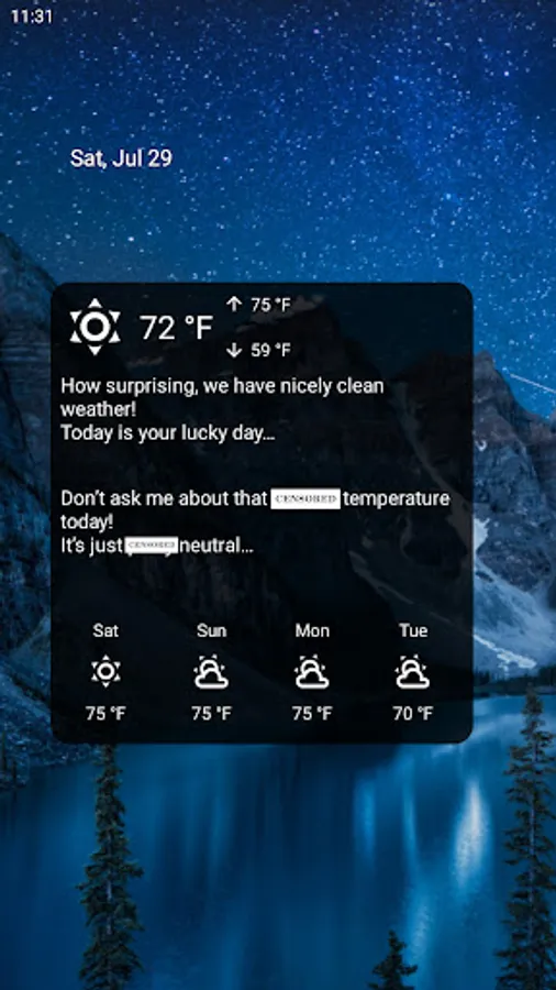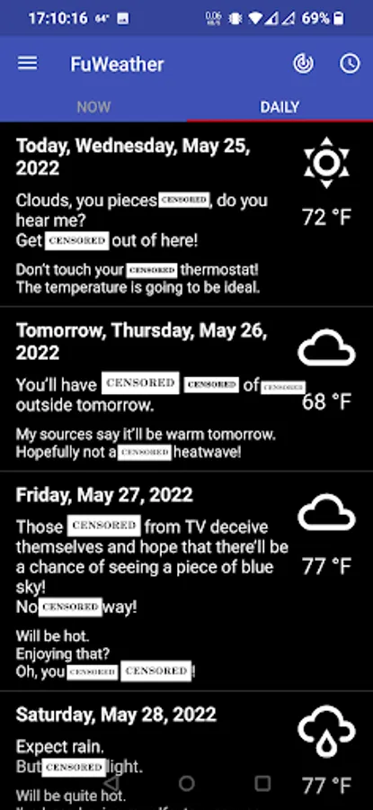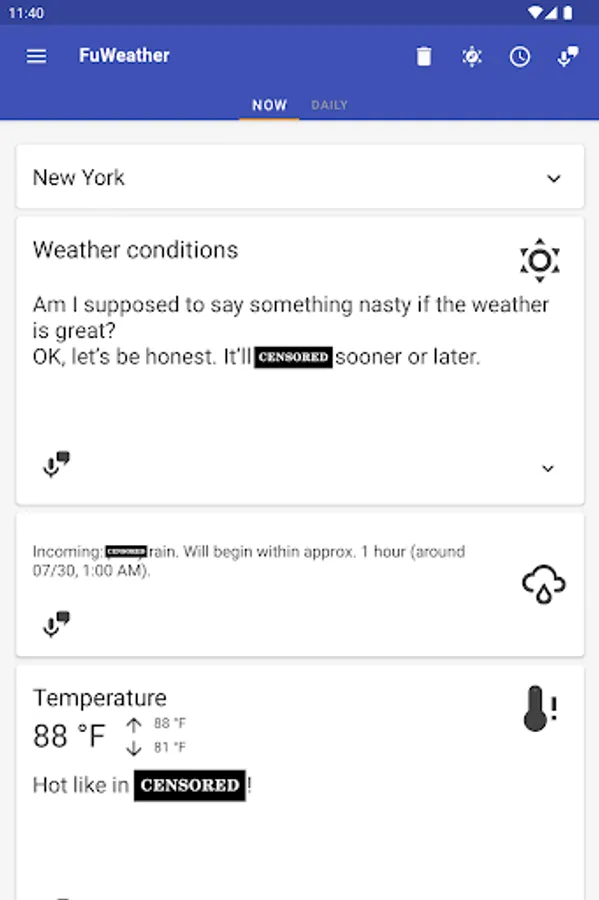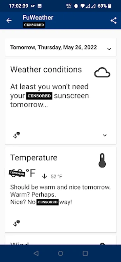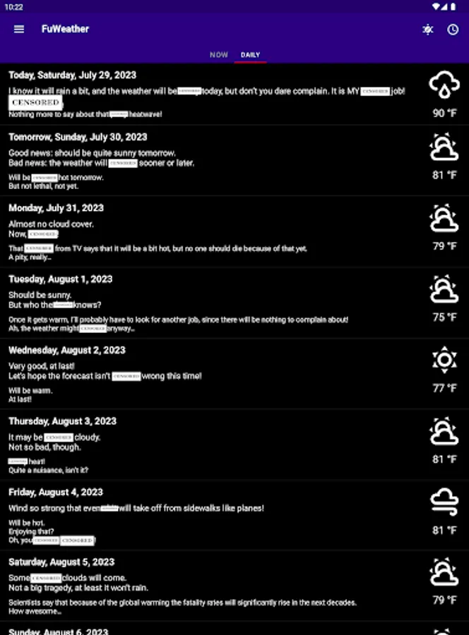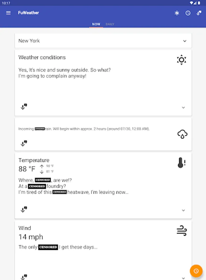 Funny weather – you're going to have a smile on your face while the app will be complaining and swearing about the weather,