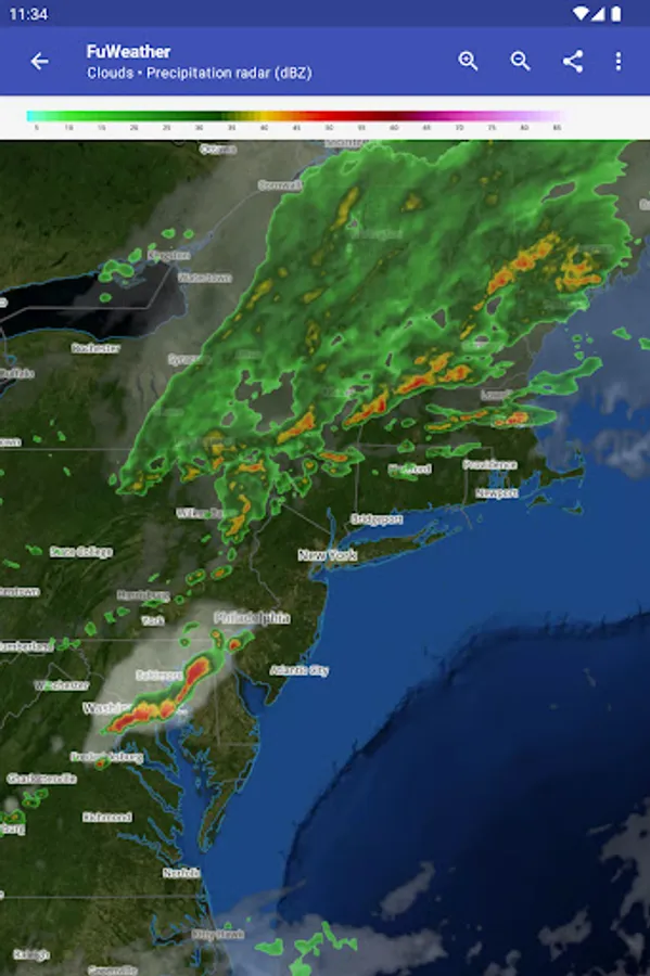 Weather maps (radar, satellite, temperature, humidity, wind)*,