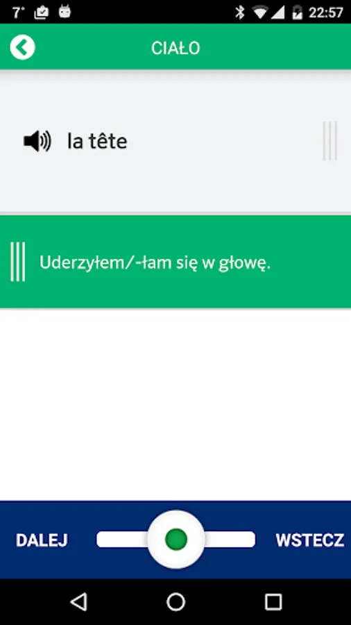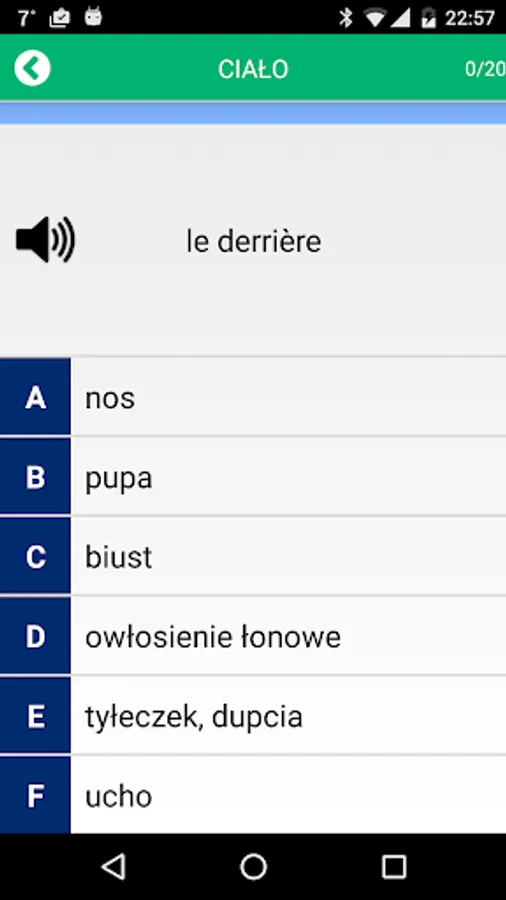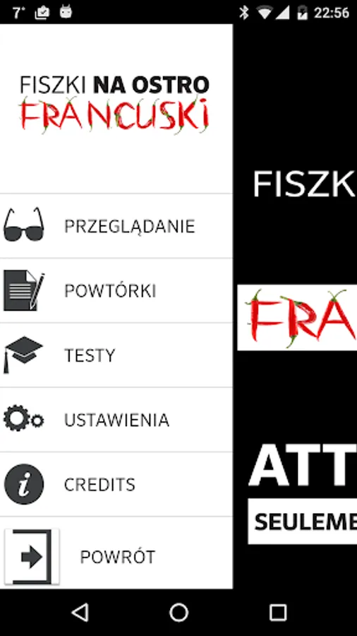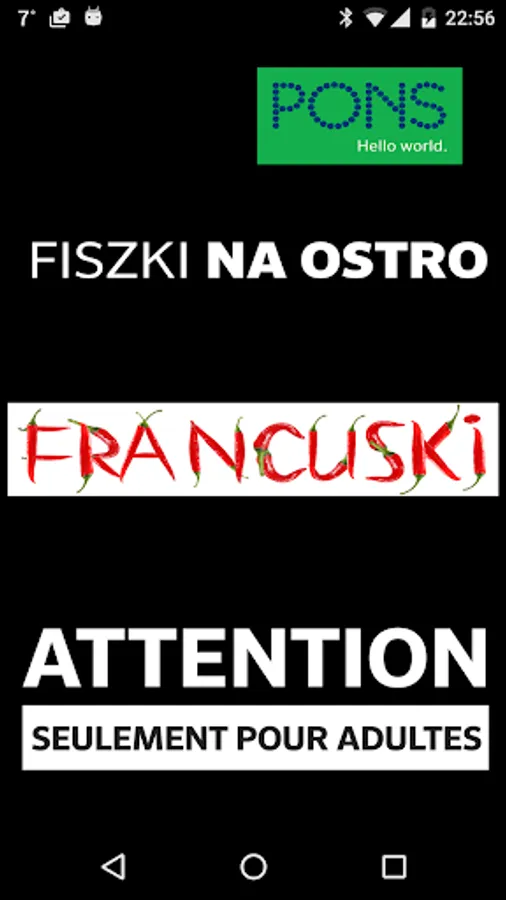 An application that will teach you the basic French vocabulary! With our fiszkami you see how quickly expands the set of French words that you have learned through our application. Look at them, meaning words that you already know, listen to the correct pronunciation. If you already feel comfortable - use test and let the system has rated your knowledge!
