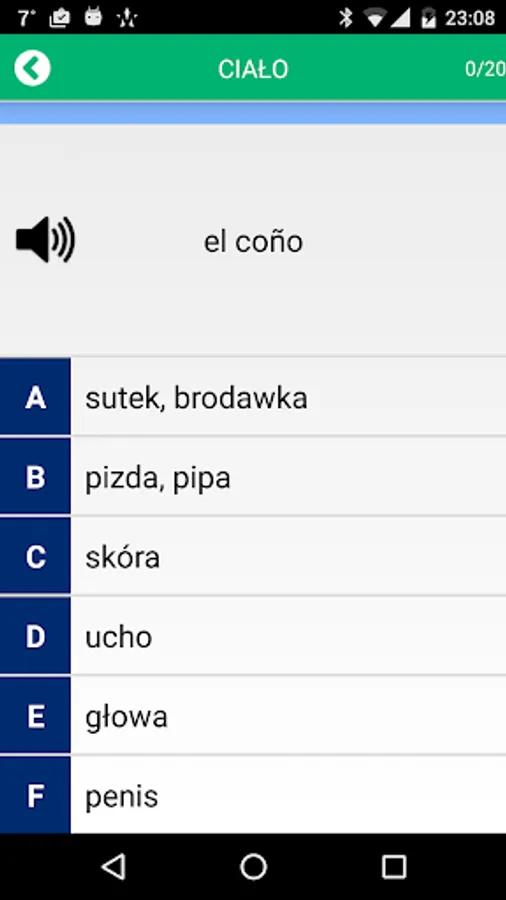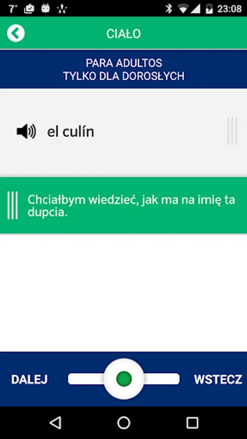 An application that will teach you basic Spanish vocabulary! With our fiszkami you see how quickly expands the set of words of Spanish that you have learned through our application. Look at them, meaning words that you already know, listen to the correct pronunciation. If you already feel comfortable - use test and let the system has rated your knowledge!