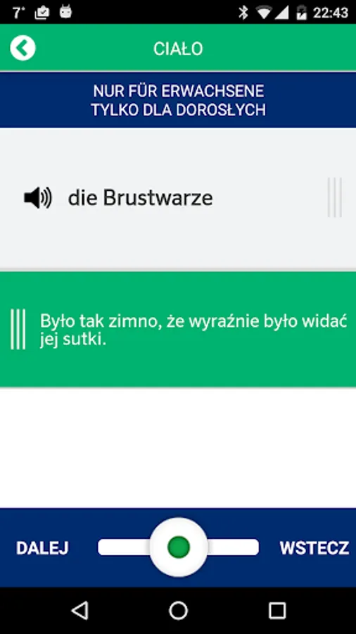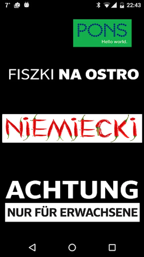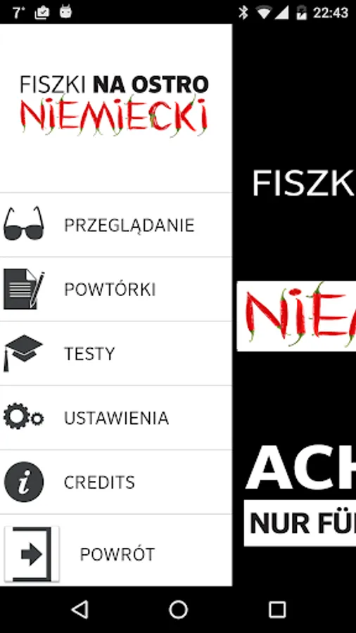 An application that will teach you the basic vocabulary of German! With our fiszkami you see how quickly expands the set of words of German that you have learned through our application. Look at them, meaning words that you already know, listen to the correct pronunciation. If you already feel comfortable - use test and let the system has rated your knowledge!