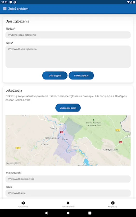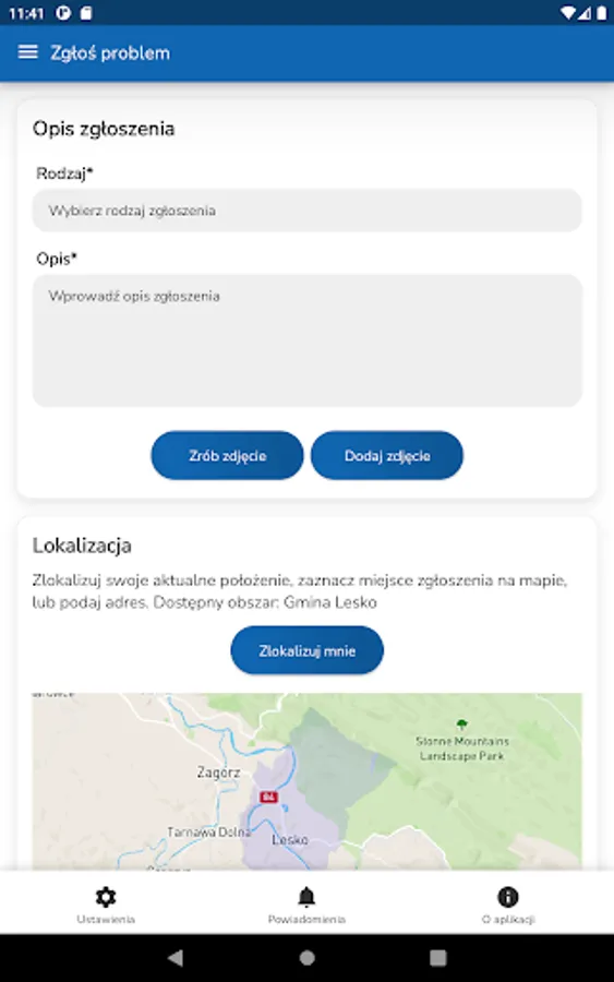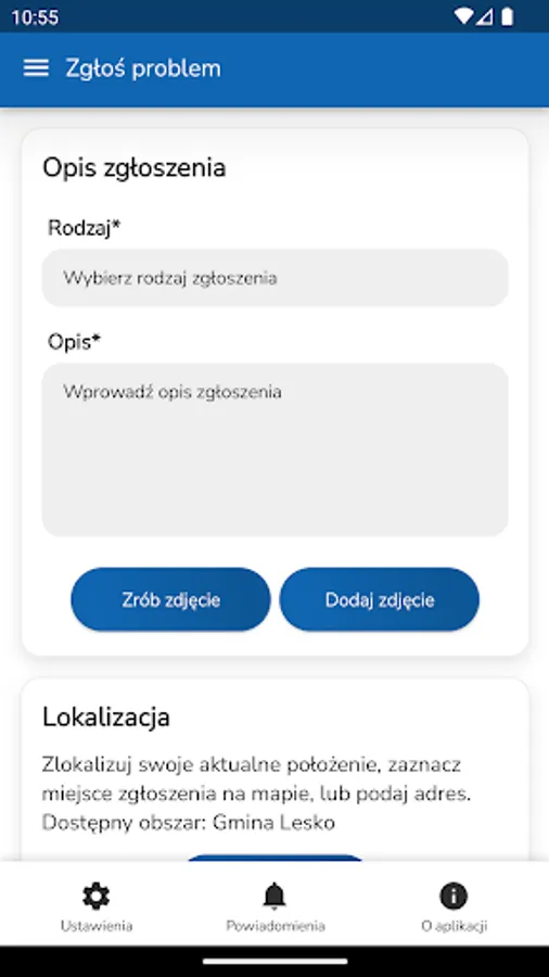 The application allows you to report various problems or faults in a very simple way.