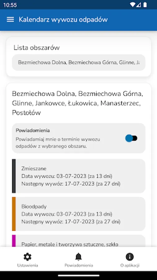 The application will remind you about the date of collection of individual waste, inform you about the rules for conducting selective waste collection, and inform you about news related to this topic. The module also allows you to send complaints about the lack of waste collection, damaged container or other situations.