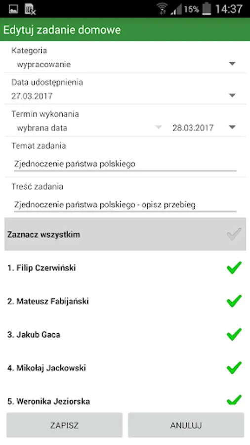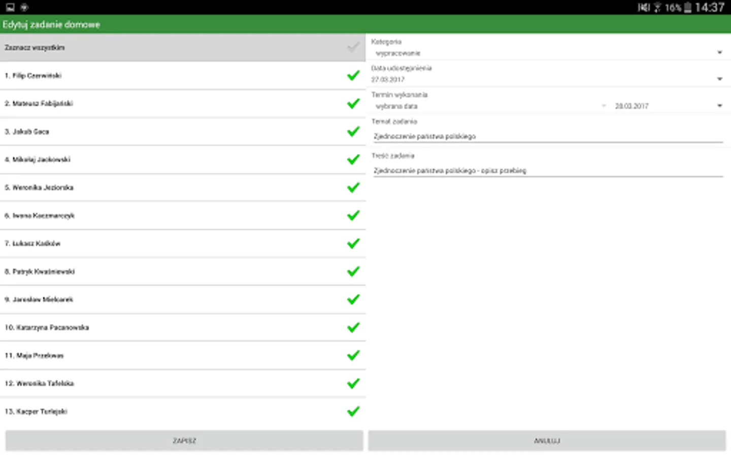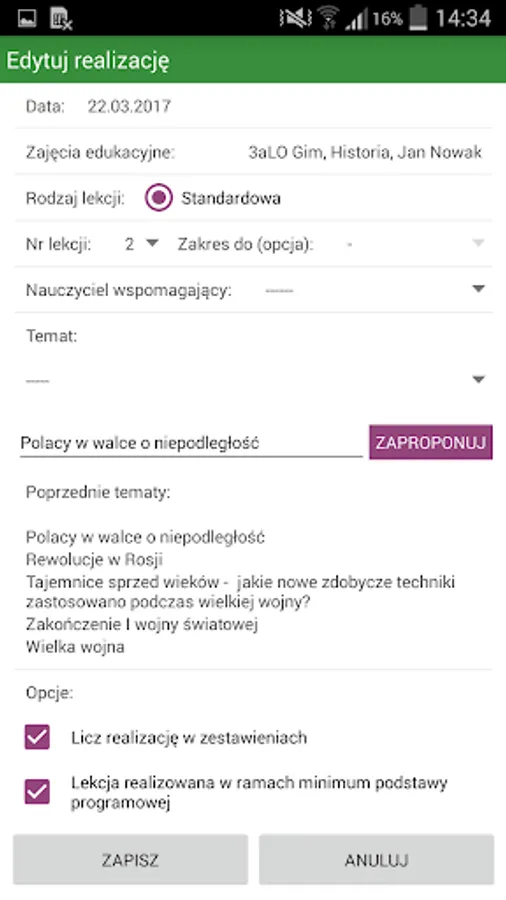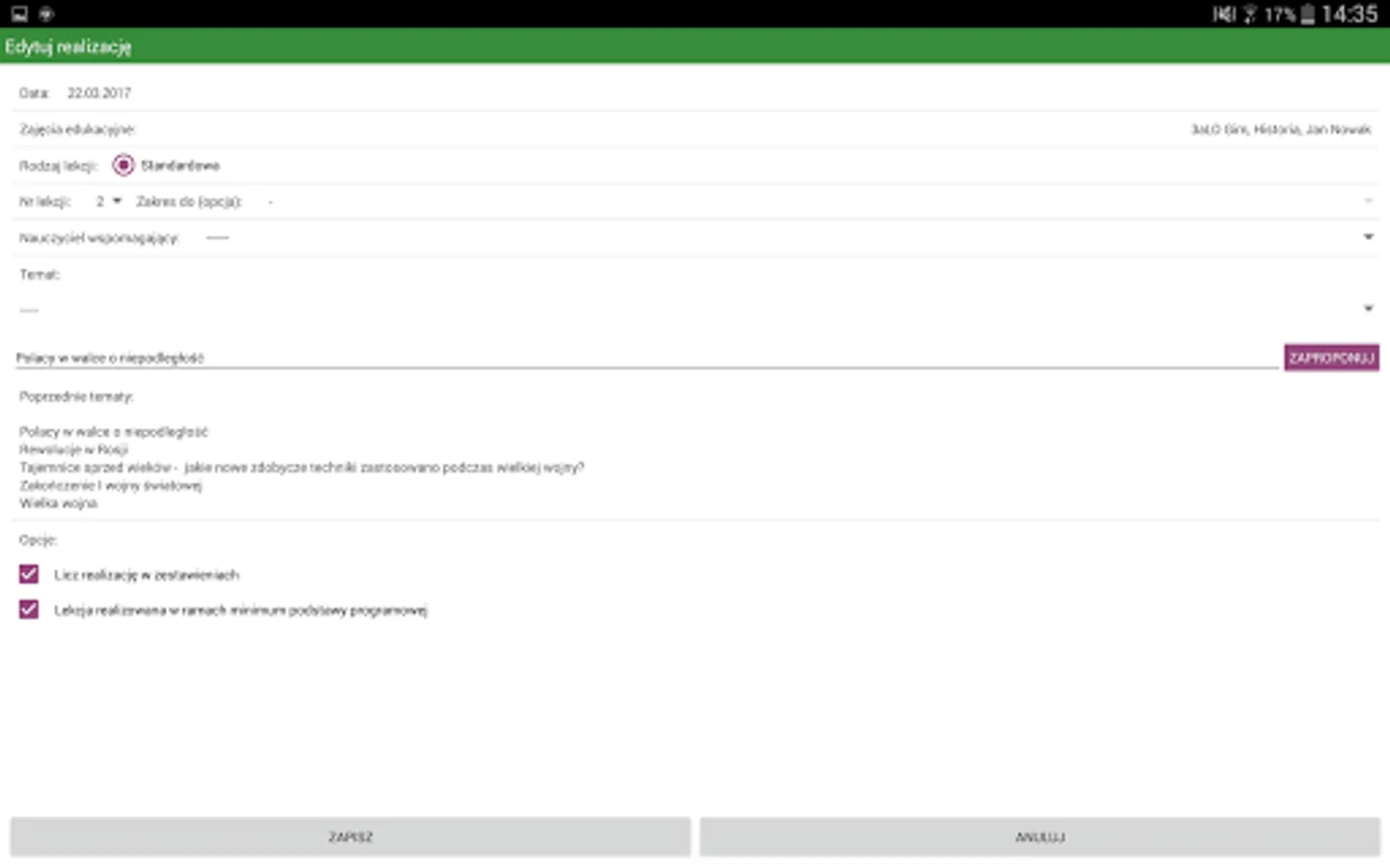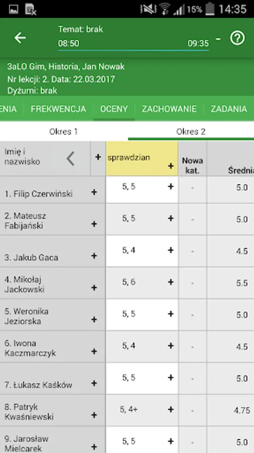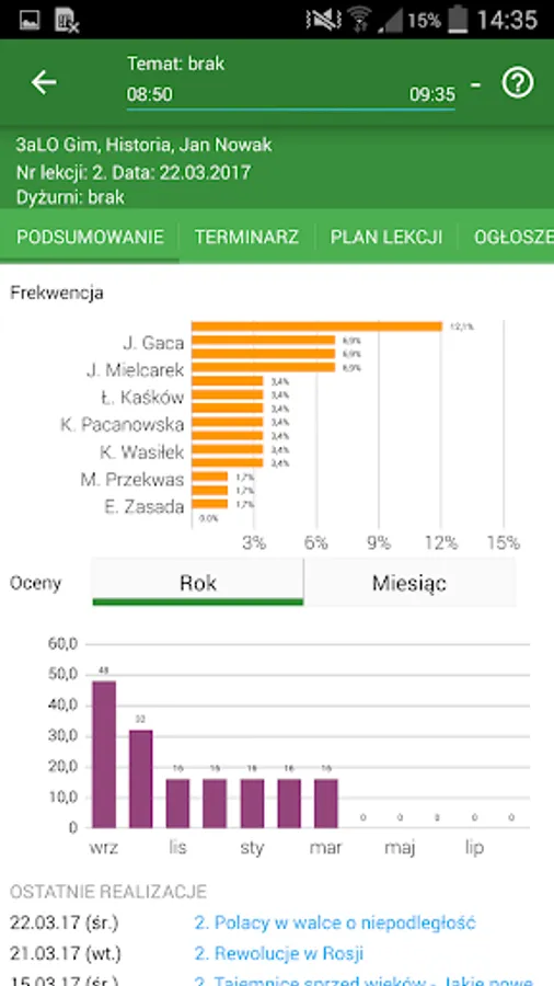 The application presents data that was entered into the database by the school. The frequency, scope of data and the timeliness of their entry is the same as the web version of the system and depends only on the school and its employees.