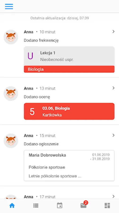 The Librus mobile application for smartphones and tablets is intended for parents and students. It enables users to view the most important information from the LIBRUS Synergy solution. The new, clearer interface and Timeline view will make using the application quick and convenient.