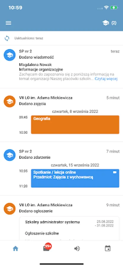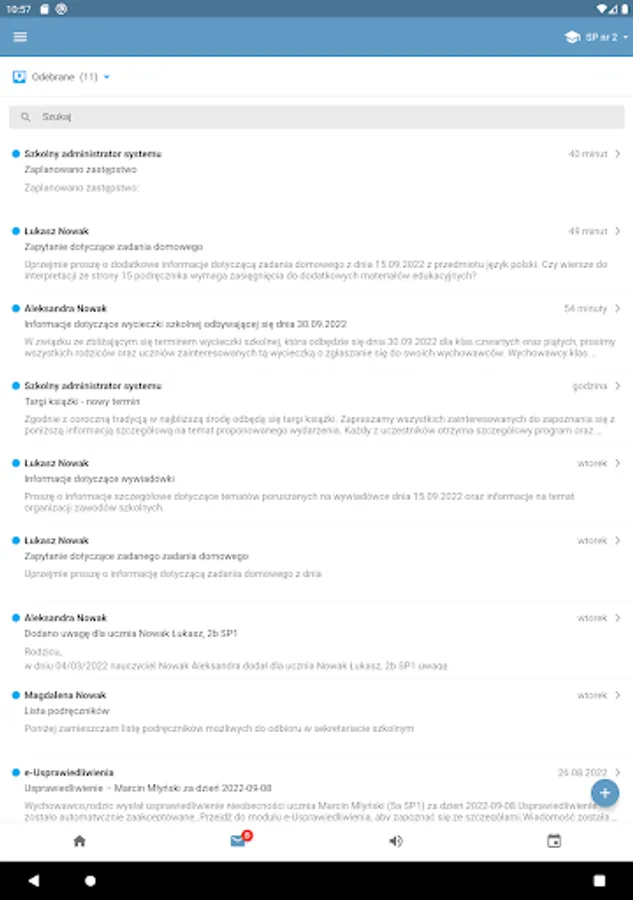 Check what tasks await you on a given day - class schedule, schedule, substitutions, shifts, lessons from other activities logs - even from several schools in one view.