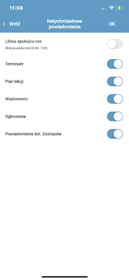 Turn on LIBRUS. Calm Night and mute notifications in hours. 22: 00-7: 00. Sleep well, read the message e.g. about a change in the timetable in the morning.