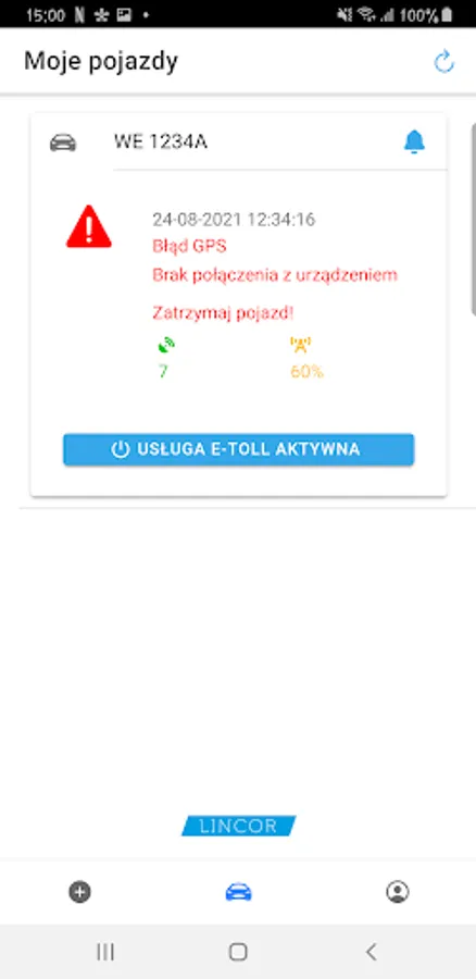-Receiving push notifications about the change in the operating status of the etoll service (no communication, delayed data, no GPS)