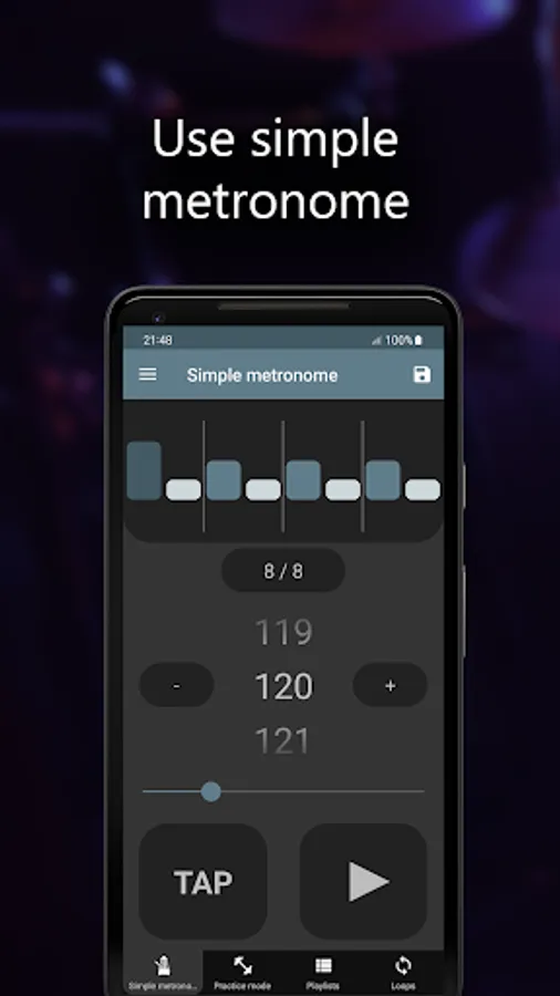 ★ TAP Tempo - touch the screen to set the metronome’s speed