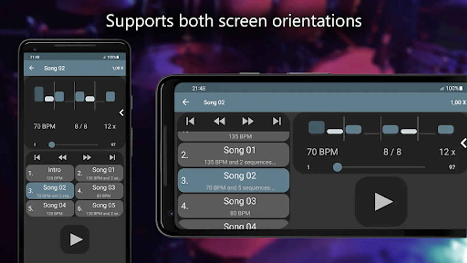 ★ Speed modifier - slow down or speed up the beat for effective practice