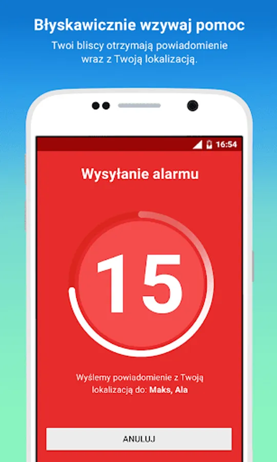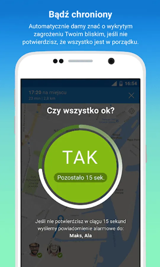 We will ask you if everything is ok. If you do not respond within 15 seconds automatically notify your loved ones.