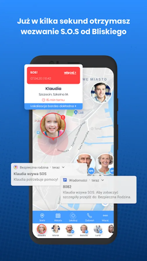 A close one will notify you about the threat in a very simple way. The call of S.O.S. It will go to you and to all the people indicated in the application, just a few seconds after the person from your family in need of immediate support presses the appropriate button on their device. A video or photo with the exact location will be attached to the application.