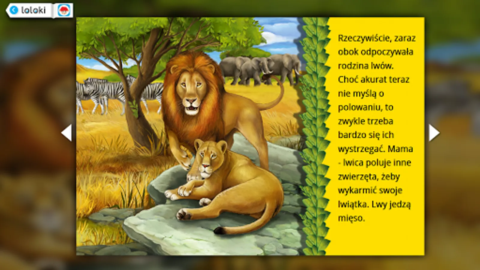 Every book contains illustrations or photos, professional recordings of a lector's reading, and text, presented with readable font. Some of publications are enriched with music and sounding, created from scratch for each book. The frequency of page-turning is very high - 2-4 sentences for each page / each illustration, which helps young readers to stay focused and distinguishes the Loloki Library from any other e-book / audio-book libraries.