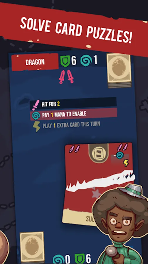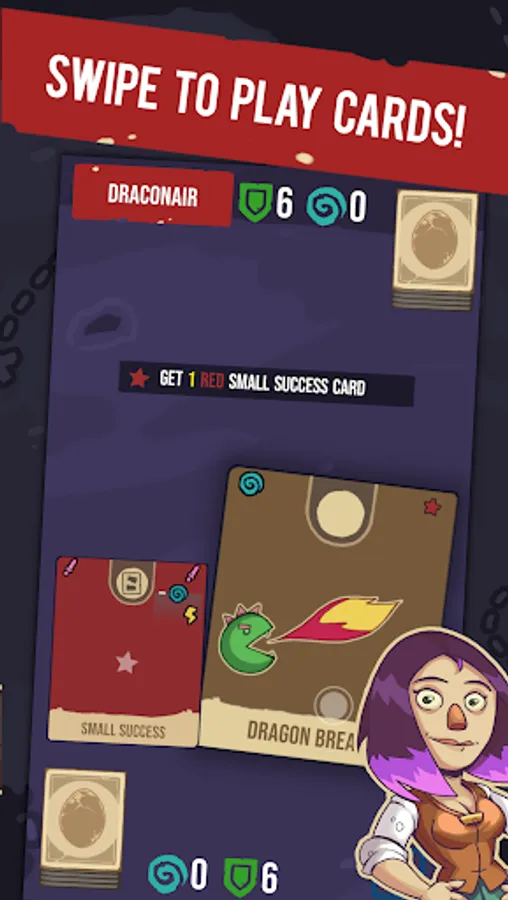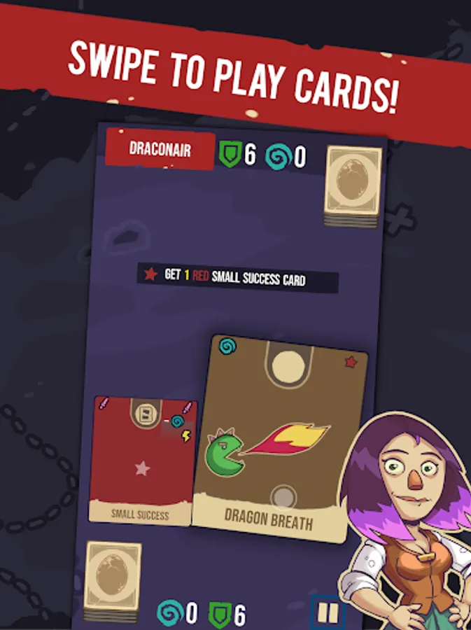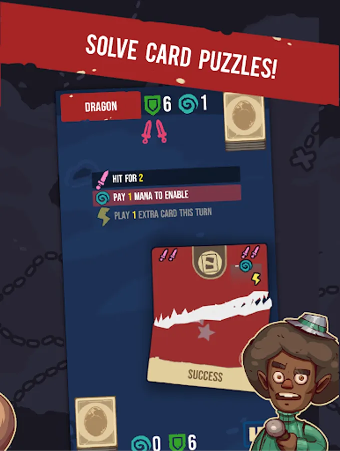 During your adventure you will collect cards and use them to duel mini-bosses controlled by the computer. It'll require mini deck building, carefull planning and a strategic approach. The game has no randomness so each time there is a solution. Each card in your deck can be swiped either left or right to have a different effect.
