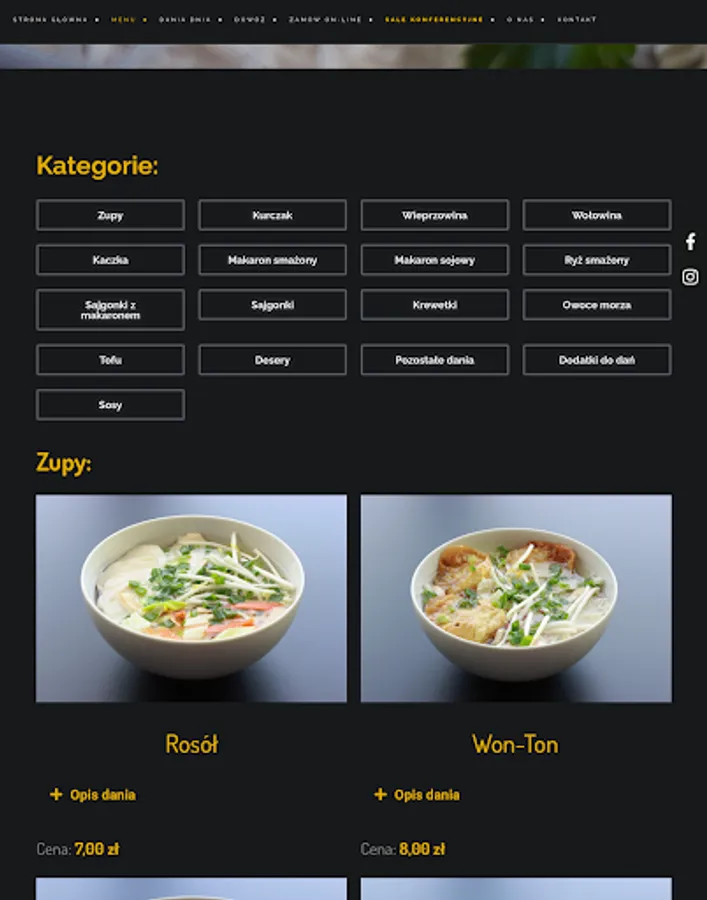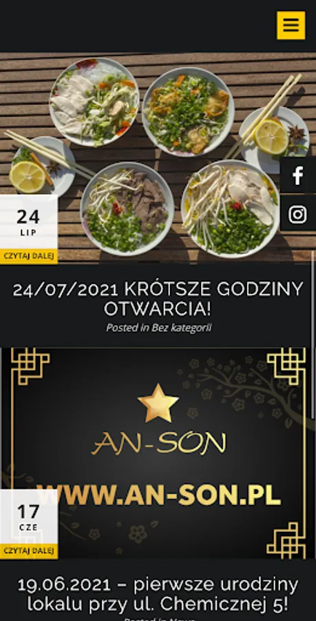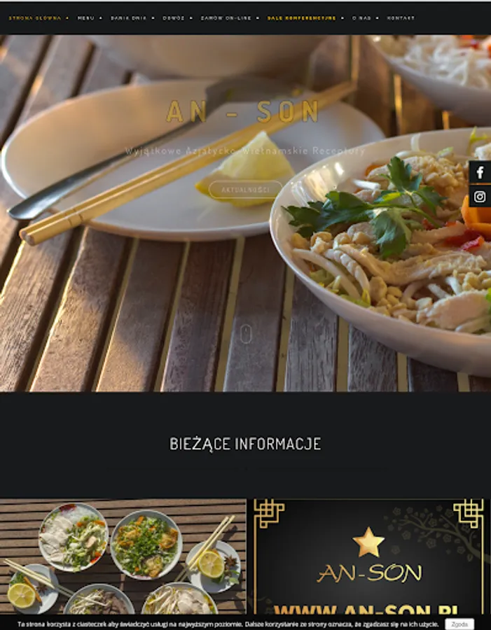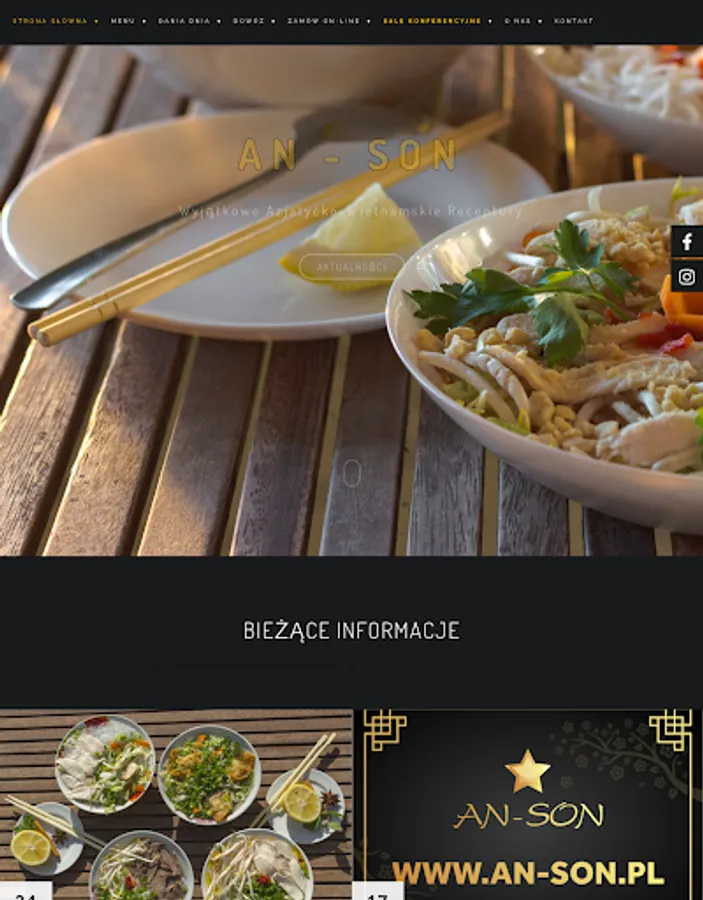 Application for online ordering at An-Son restaurant in Zielona Góra.