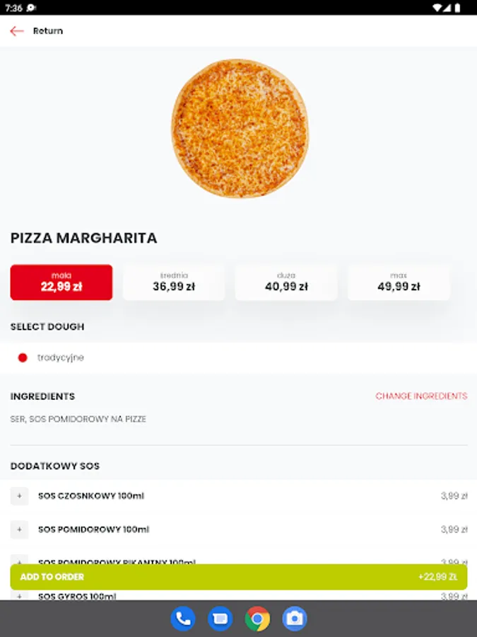Don't forget to add a starter to your order, e.g. delicious Mini Calzzone and a drink.