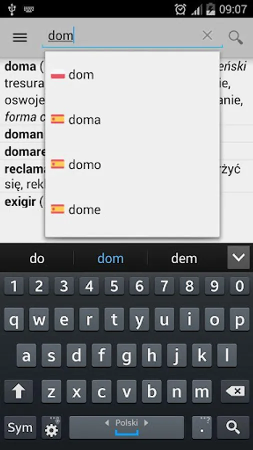 - Option translating words in other applications (eg. A web browser) available when you select text, select a share and then Dictionary Spanish