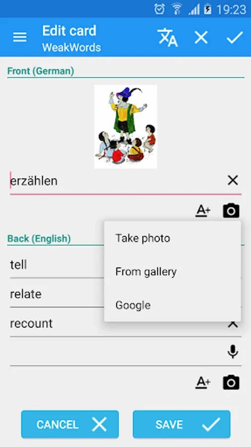Super Flashcards lets you learn languages very efficiently by showing them just before you would forget.